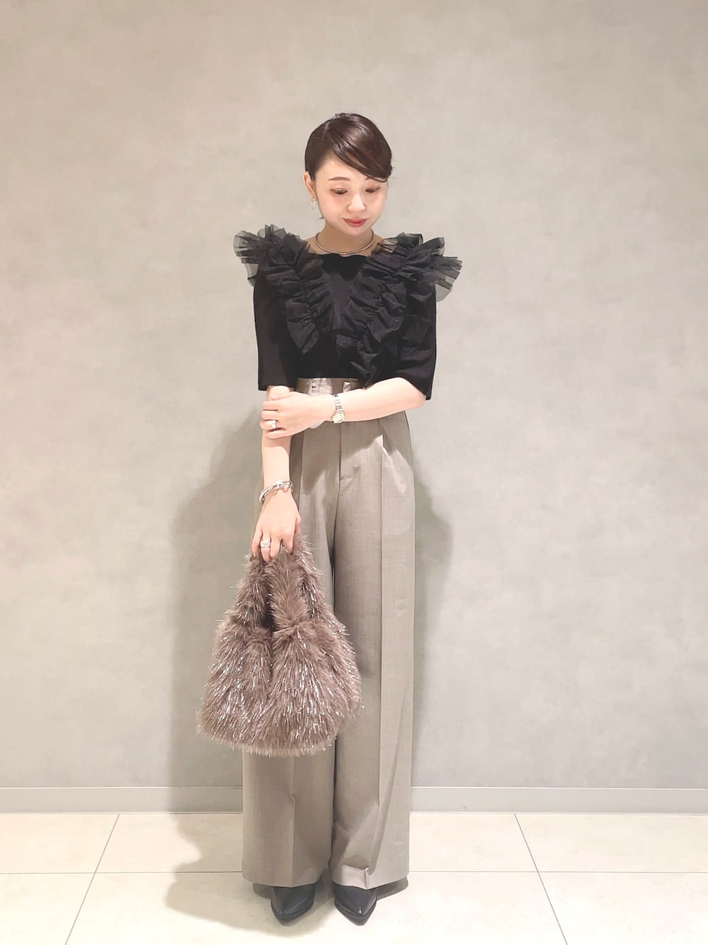 ぐりすけのニット/セーター「チュールフリルリブニット」を使ったコーディネート