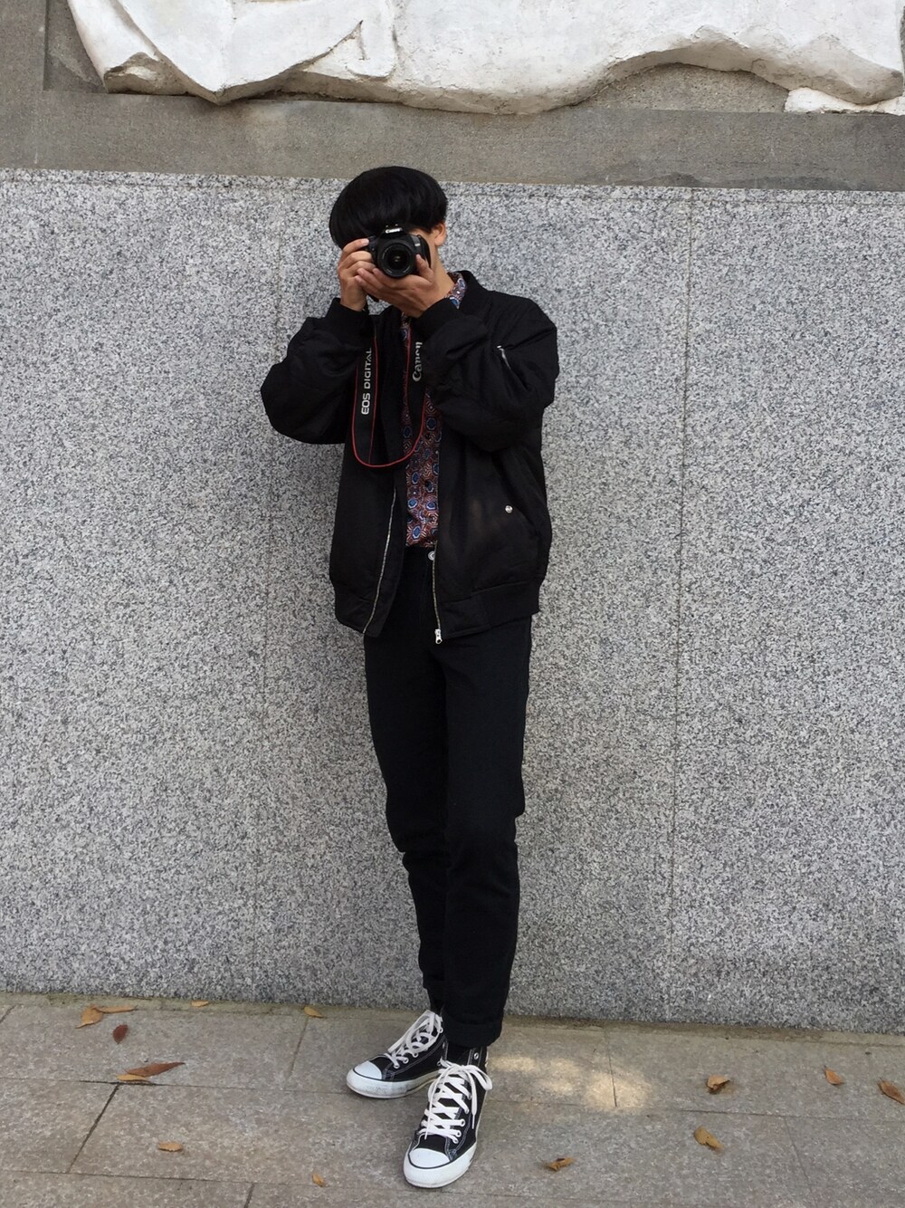 今日は少し肌寒かったのでMA-1を着用しました。 古着と合わせることで中和されています。