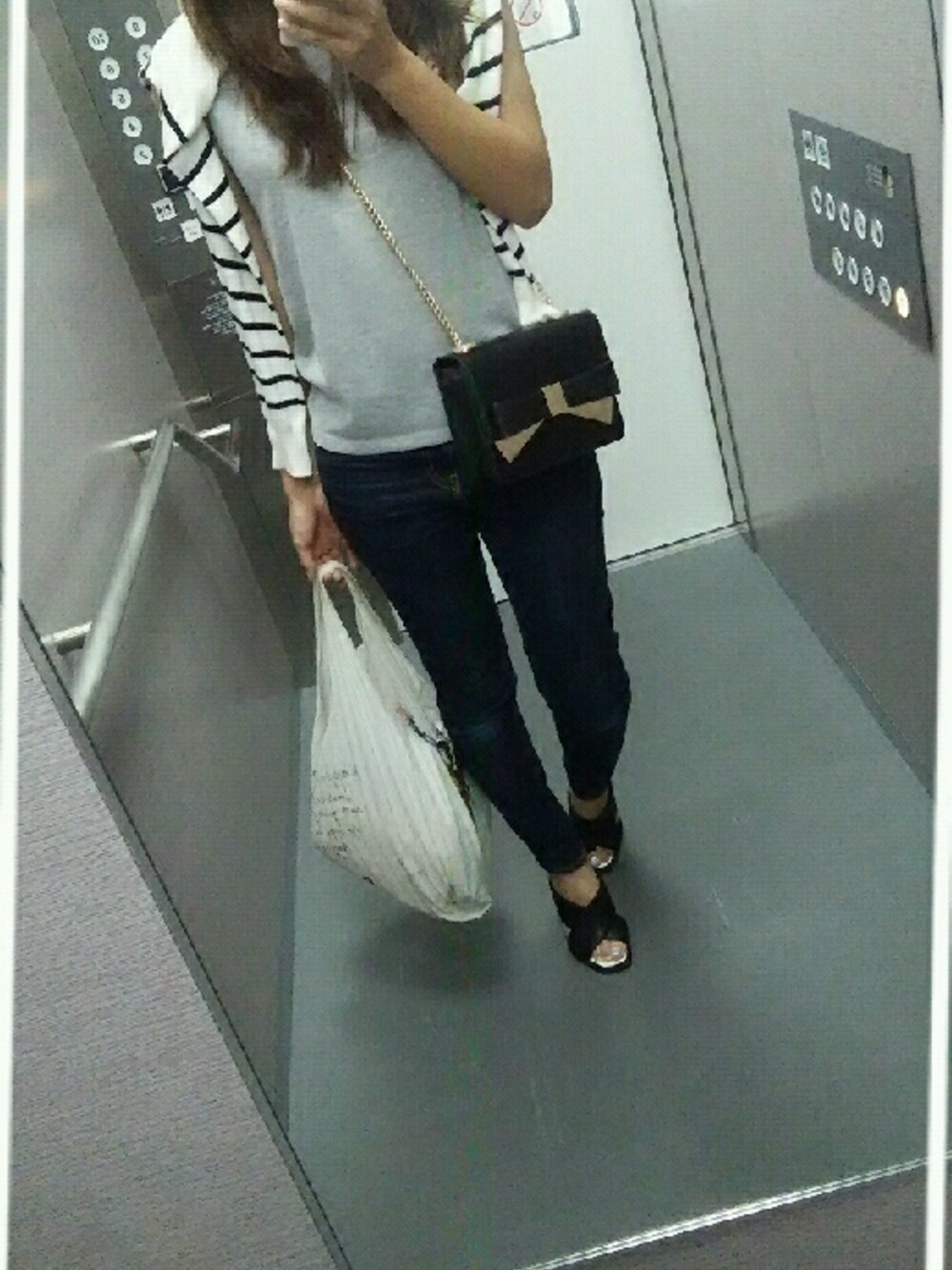 病院楽チンコーデ(笑) 娘ちゃんを耳鼻科に連れていきました 小さい鞄用に小さい財布を購入したのでさっそく♡ ママは荷物多くなるし鞄二つ持ちしません?