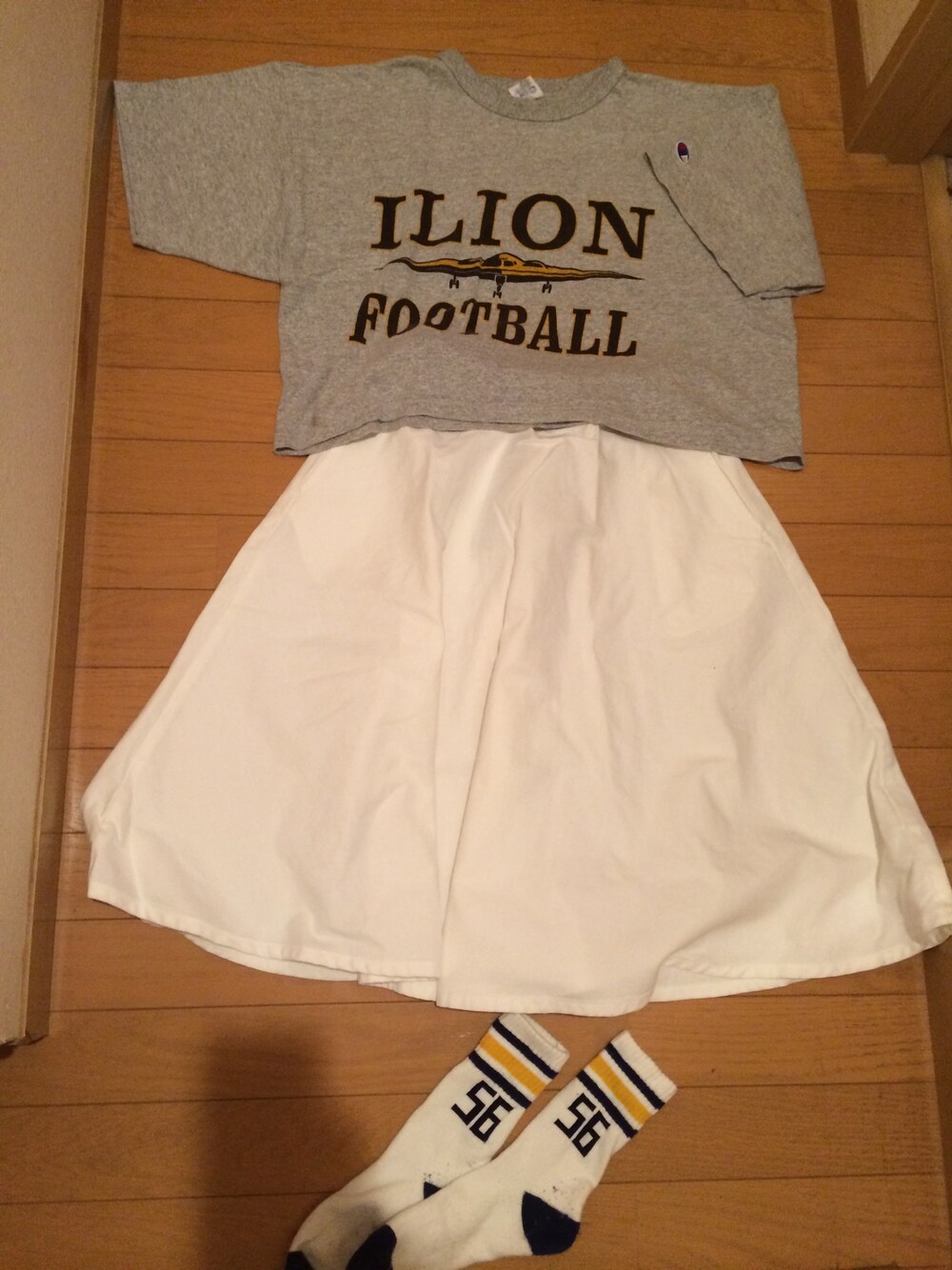 w closetのフレアスカート白を使いました。トップスにusedを使い、可愛くなりすぎない感じです。