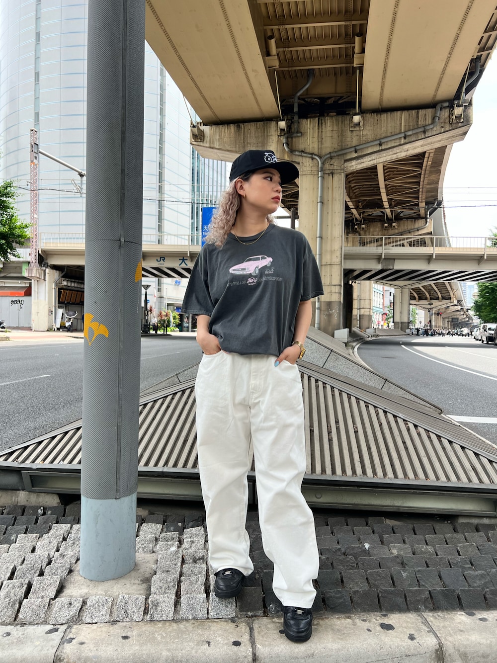 . レーシングTEEにSOURCREAMの白デニム🏎☀️ デニム3サイズありますが、私と同じくらいの身長の人は32か34がおすすめっ!💕 これは32インチ履いてます😆🫶🏾