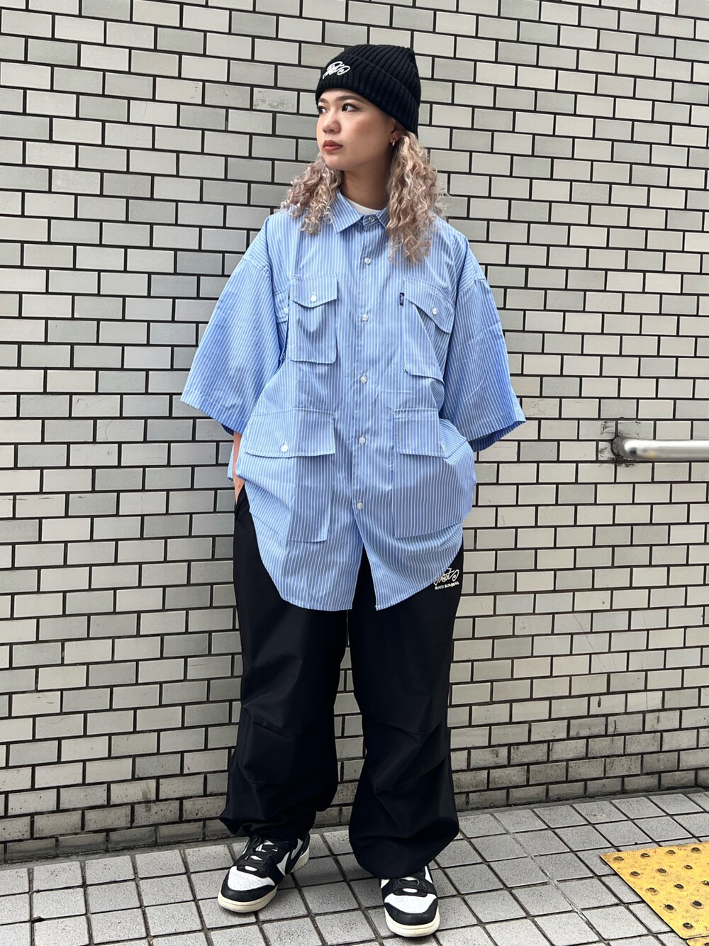 . FTポケットBIGシャツ👔 160cmが着るとこんな感じです♪ 意外と女の子でも着れるんですよね〜🧚🏾♀️ かなりビッグサイズなのでパラシュートパンツで合わせることをおすすめします☀️