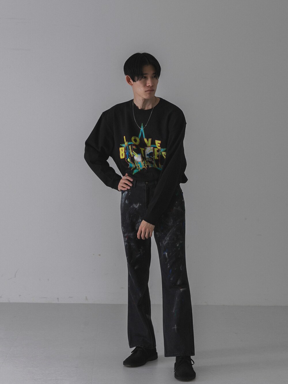 オールブラックにも少しだけ色を加えて一工夫!! バンドスウェットを合わせてロックな雰囲気に!! 宜しければインスタのフォローもお願い致します! @urbanresearch_id @ur._yui
