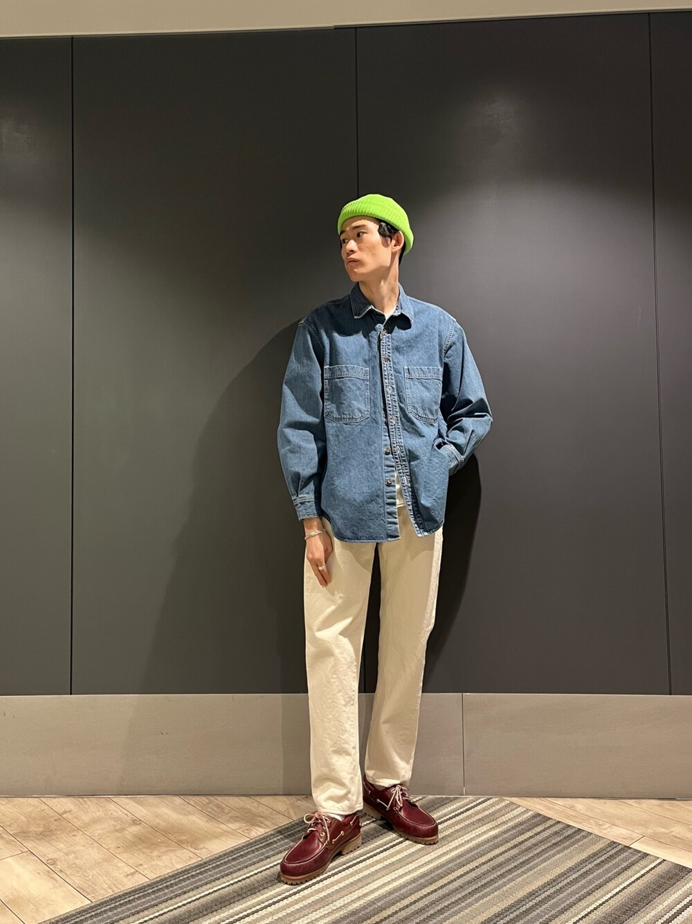 少しオーバーめなデニムシャツはカジュアルもきれいめも万能なアイテム 印象が落ち着き過ぎないように、ビーニーで遊び心をプラス! 宜しければインスタのフォローもお願い致します! @urbanresearch_id @ur._yui