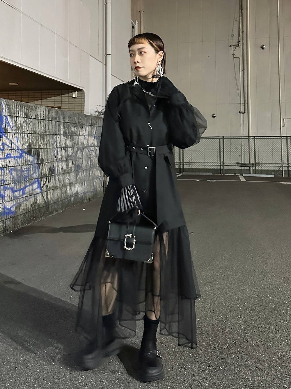 毎日更新しますので、 フォローしていただけると嬉しいです⺣̤̬♥ ↗ ↗ - ꒰ ワンピース ꒱ トレンド感とモードさを表現したHAREらしいデザイン テーラー襟やメタルボタンでマニッシュさを表現しながら、袖や裾、フラシ部分にチュール素材を重ねることでフェミニンさをプラス 斜めにカットされた裾がポイント 一枚着はもちろん、パンツやスカートとのレイヤードスタイルはおしゃれ上級者の着こなしに◎ 足元はロングブーツで合わせるのがおすすめです。 - インスタ⭢ 私のスタイリングリール、プライベートも載せているので覗いてください! ↓↓着用アイテム全て下記にございます↓↓