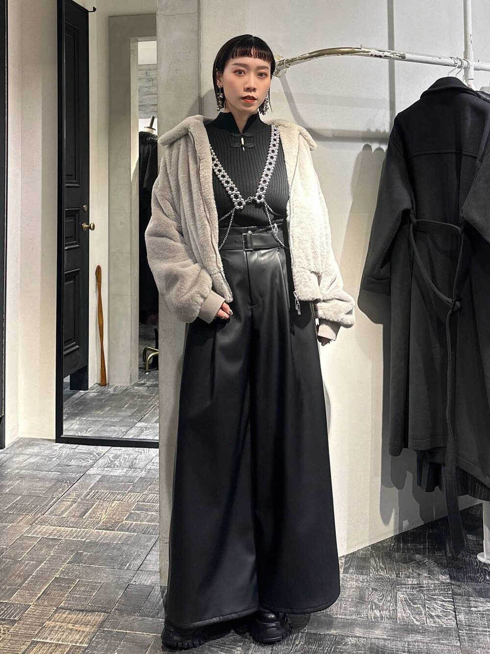 •コンパクトなサイズ感で肌触りの良い上品なファーブルゾン ボリューム感と程よい光沢感のあるファー素材で、上品な印象に✨ ショート丈、トレンド感のあるシルエット! ダブルZIPでシルエットが自由に変化することができる! •チャイナデザインがポイントのタイトハイネックリブニット✨ 袖と襟が配色になってて、レイヤードスタイルや、アウターを着た時もワンポイントに◎ 伸縮性のある生地で、締め付け感が無くストレスフリーな着心地 裾にスリットが付いており、女性らしさと抜け感をプラス インスタ⭢ 私のスタイリングリール、プライベートも載せているので覗いてください! ↓↓着用アイテム全て下記にございます↓↓