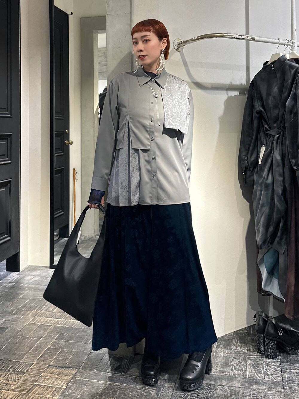 モードキレイめコーデ✨ デザインたっぷりのプリーツシャツ、一枚でおしゃれに見えます! インスタ⭢ 私のスタイリングリール、プライベートも載せているので覗いてください! ↓↓着用アイテム全て下記にございます↓↓