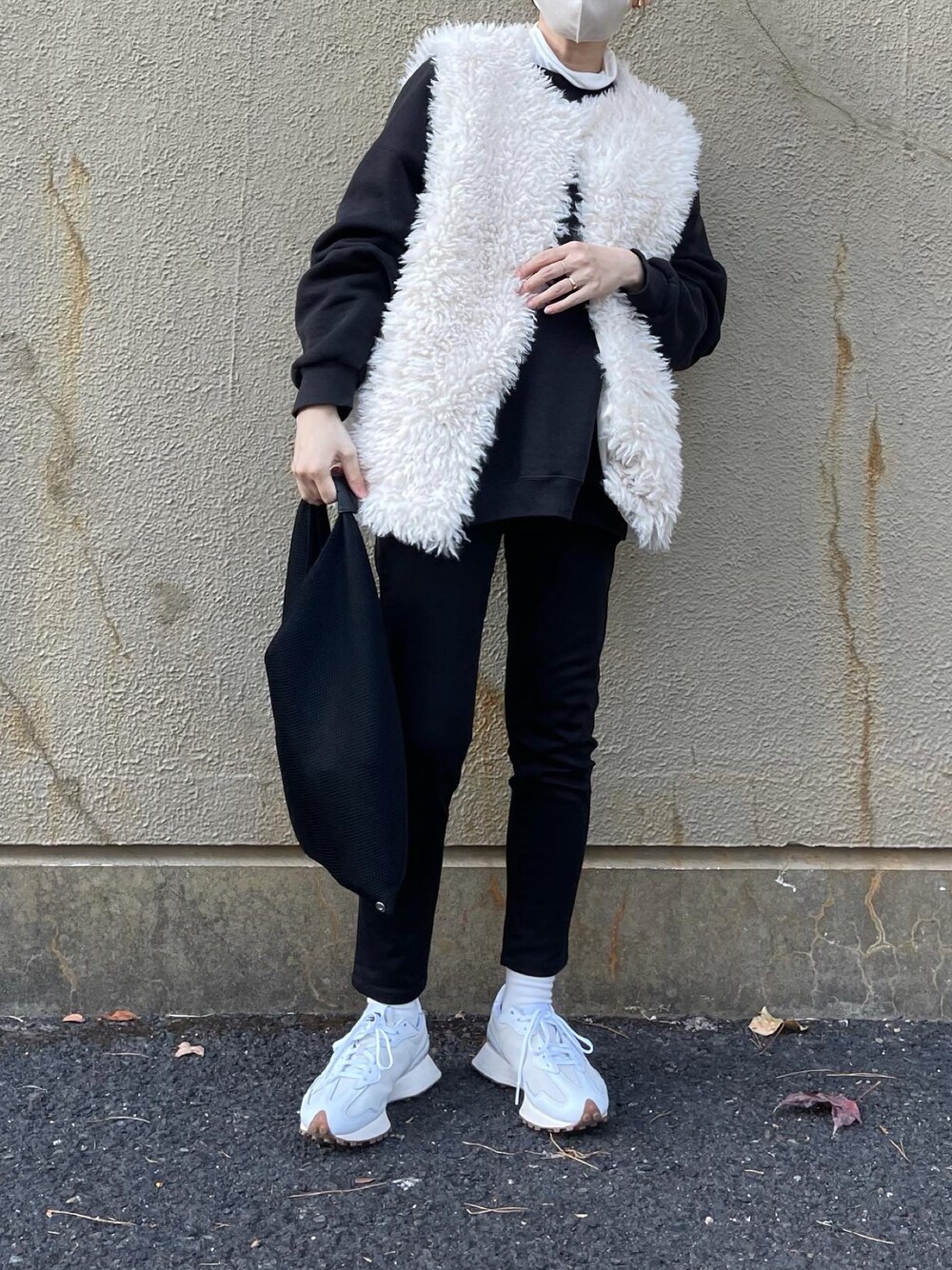 明けましておめでとうございます🤍 今年も宜しくお願いします! いっぱいおしゃれ楽しみたいです☺️ 2022年の最初もモノトーンです✌️ もこもこ可愛いです☁️