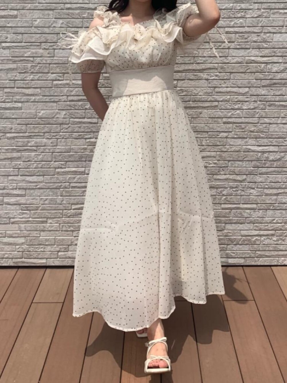 SNSでも大人気のミルフィーユワンピ🤍 胸元のボリュームが華やかでかわいいです! 丈感は158cm.Mサイズで足首まであります✨