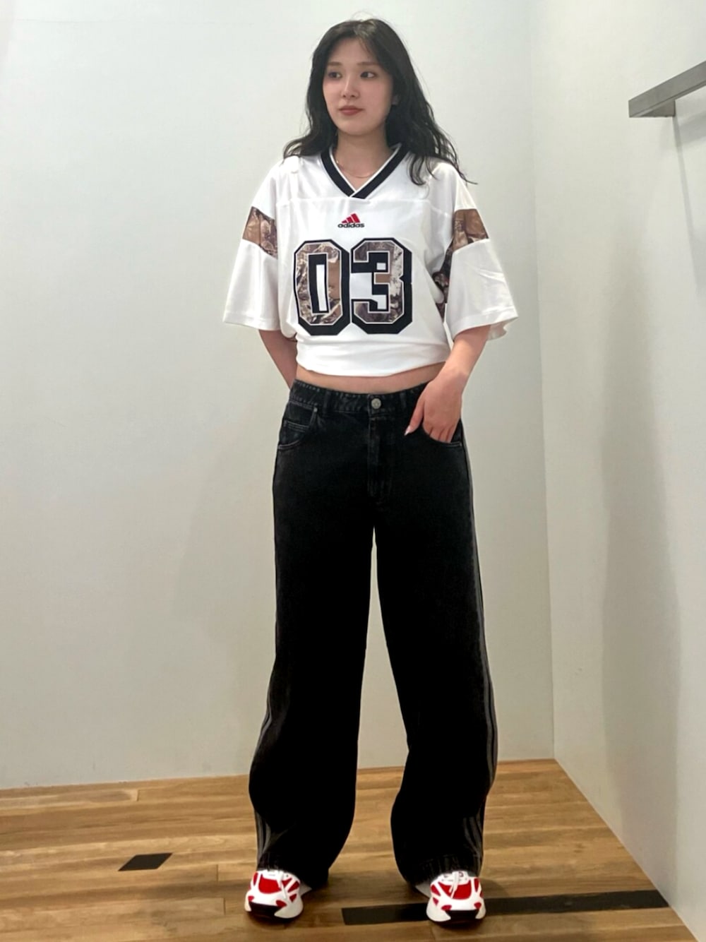 OY(アディダス オリジナルスショップ ダイバーシティ東京 プラザ)のトップス「adidas Originals 迷彩サッカー ジャージー」を使ったコーディネート