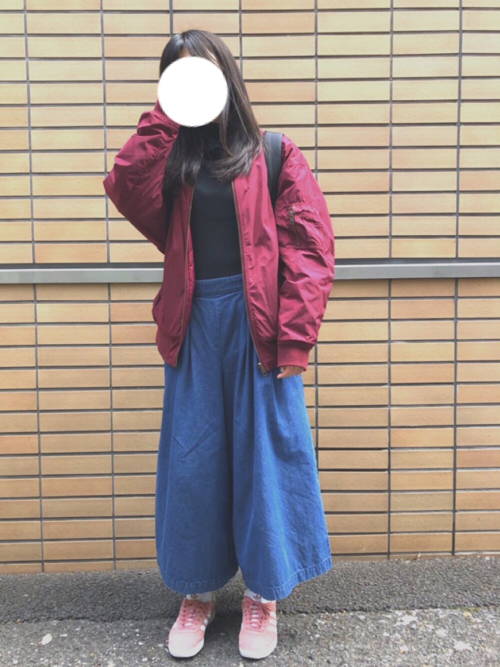 今回はゆるめのシルエットで! ワインカラーのMA-1は 一昨年くらいにGUで購入したもの Lサイズをダボっと着ています 中のハイネックニットは 一昨年くらいにH&Mで購入! 写真だと分かりづらいですが 襟の部分がフリルになっていてとても可愛い 薄手なので春先も着れちゃいます デニムのワイドパンツは 去年ハニーズで購入しました くるぶしが見えるくらいの丈で 色の感じもお気に入りです✌︎ 全体的に暗めの色合いなので 足元は春らしくピンクのスニーカーにしてみました