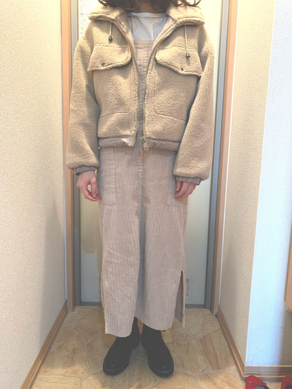 もこもこコーデ🐏 右下のパンプスが気になりますが…👀