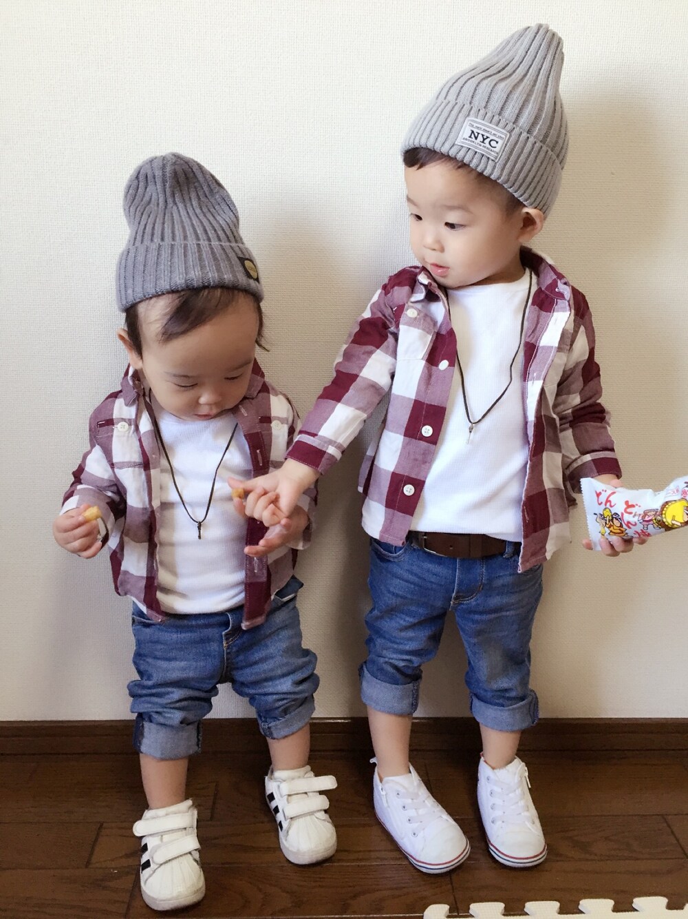 男の子兄弟👬👣 お揃いで着せたくなるなんでも💭 ニット帽かわい♡シンプル✨