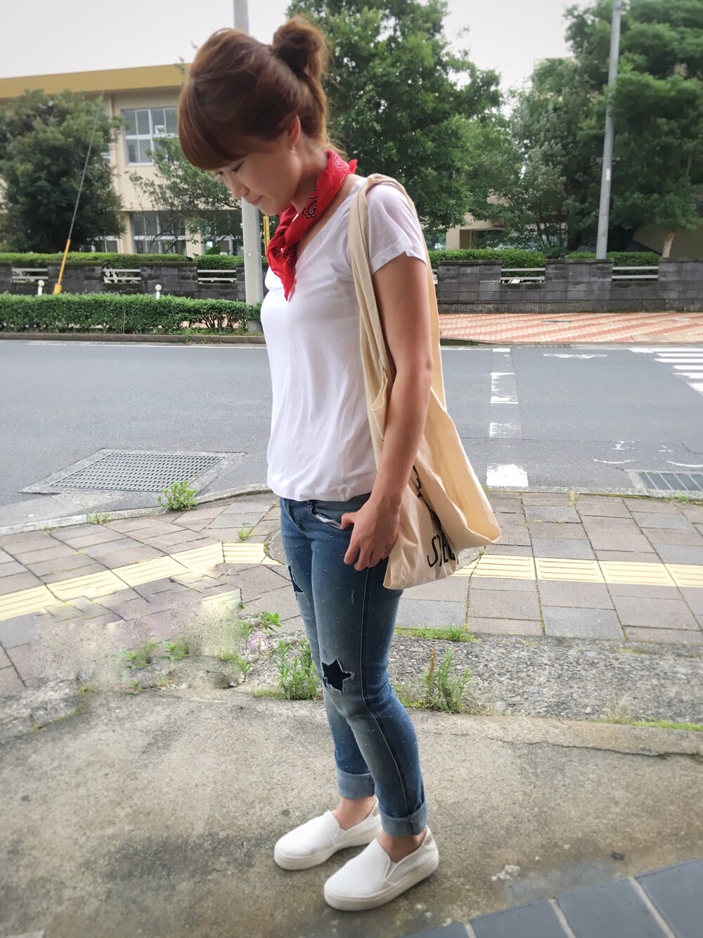 もらい物の星柄デニムに赤バンダナ なんとなくアメリカン★