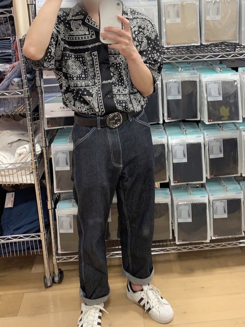 見ていただきありがとうございます。良かったらフォローいいねお願いします。 古着チックなコーデ ペイズリー柄解禁シャツ M デニムワイドパンツ S