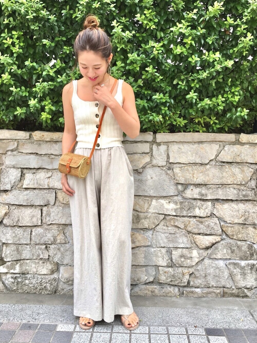ゆいこ(CANALJEAN 大阪店)のタンクトップ「RED CHOP WORKS(レッドチョップワークス) ニットボタンタンクトップ」を使ったコーディネート