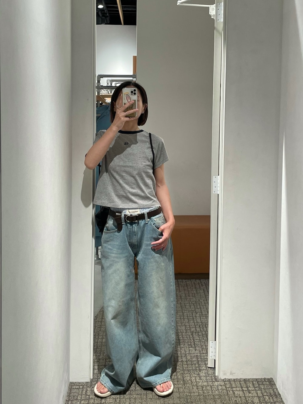 狙っていたチビT♡ 王道のデニムで合わせるのが1番すき👖ˎˊ˗ ストライプのショートパンツをinしてウエストちら見せ👀