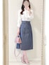 𝐷𝑅𝐸𝑆𝑆𝑇𝐸𝑅𝐼𝑂𝑅 のトレンチスカート💙 女性らしいシルエットなので デニム素材でも綺麗めに着られて 着回しがききそうです🐇♬ ウエストのベルトは長さがあるので リボン結びしても可愛いです🙆🏻♀️🎀