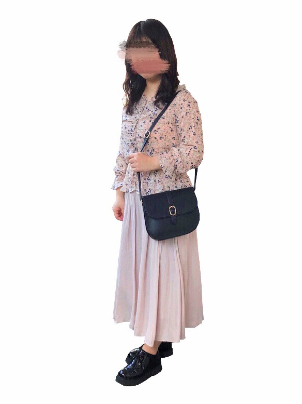 珍しく全体的に明るい色味のコーデ🌸 ハニーズのロングスカートは、優しくてふんわりした印象になるのでお気に入り❤︎