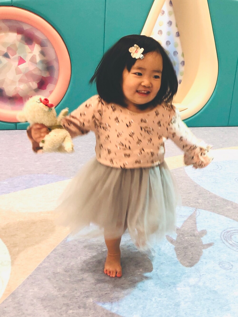 ショッピングモール内の 2歳児の遊び場フロアに 時々行きます♡ 大人しい性格ですが 最近走り回るようになってきました^^