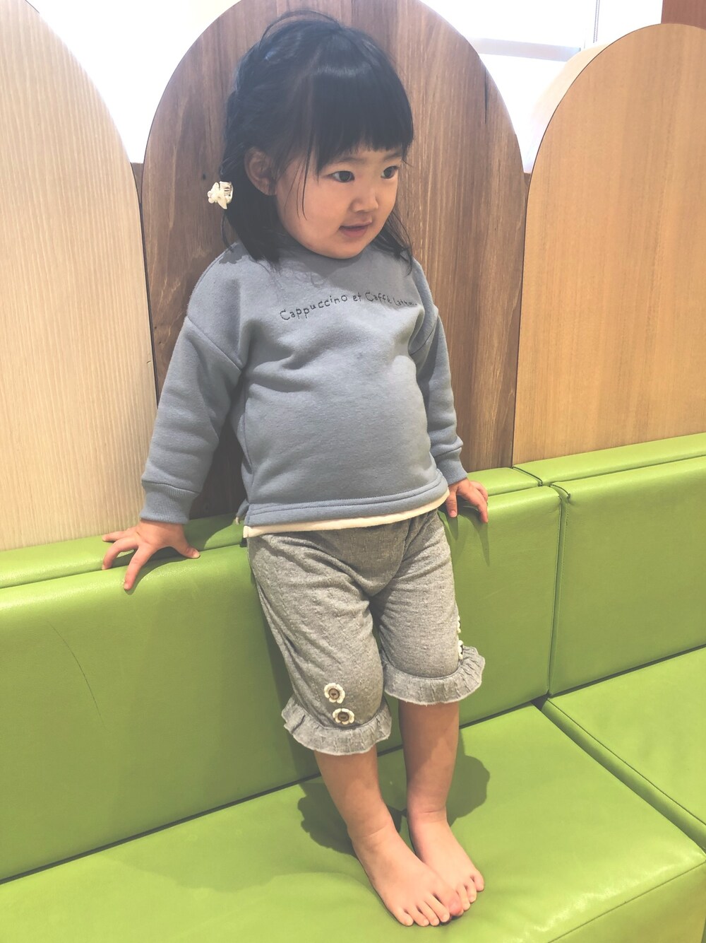 グレーみのブルーが 可愛くて購入♡ 刺繍の文字も丸みがあって とってもオシャレ♪♪ 重ね着風のオフホワイトの差し色に きゅんとします( *˘꒳˘*)