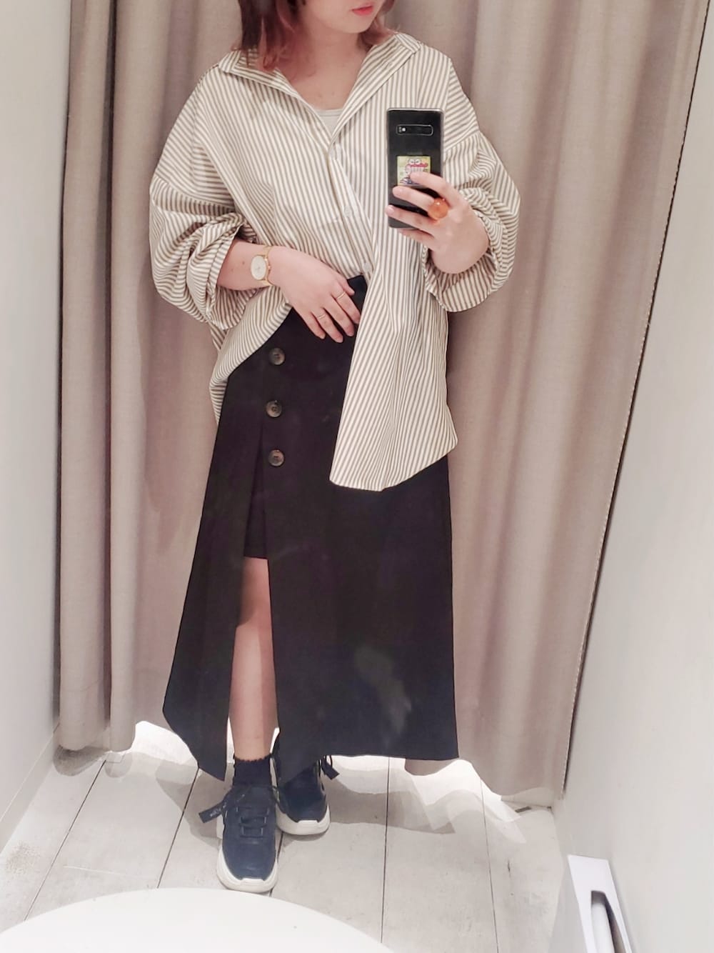 ゆい。のシャツ/ブラウス「カラフルストライプゆるシャツ」を使ったコーディネート