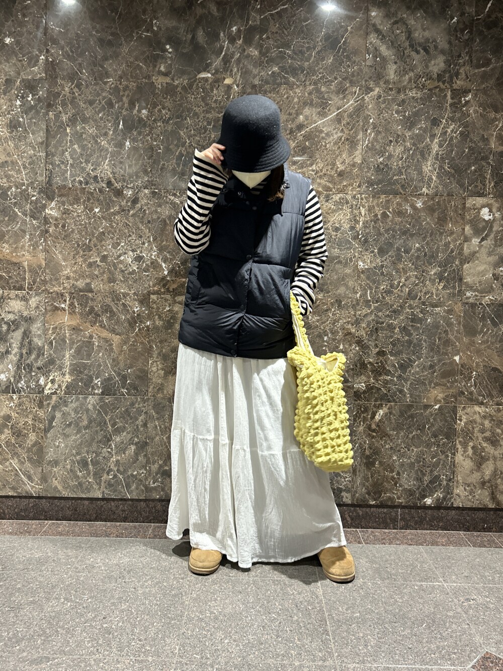 cocaのスカートがめちゃくちゃ万能💕 ポップコーントートバッグの黄色が映えるね💗