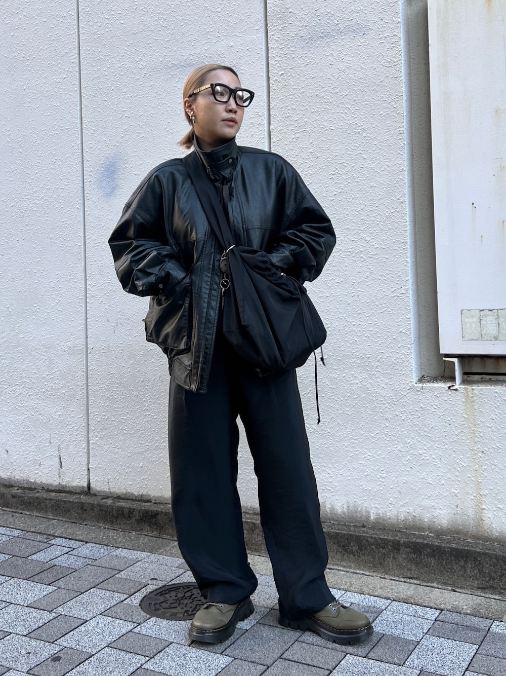 オールブラックの日🤍足元だけあえてカーキ入れました! この日は歩き回る日だったのでドクターマーチンのスニーカーを✨✨