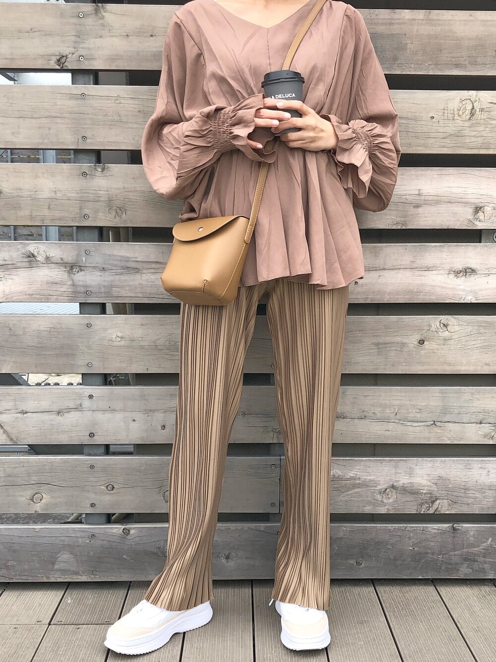 ブラウンコーデ♥ シュシュマシェリ @cho_cho_ma_cheri の パンツ履きやすい🌷 インスタnicoyui__ よろしくお願いいたします🌿