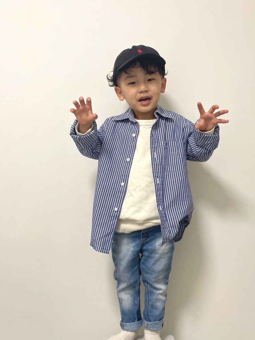ご覧頂きありがとうございます🌼ˊ˗ シンプルにシャツ×デニムstyle🤟 お気付きかと思いますがほぼほぼ毎日のようにこのキャップを被っております…🤫笑 くせっ毛で髪が散らかるから帽子必須の我が子🫢 髪が安定してない日は大抵帽子被ってます💗笑 ーーーーーーーーーーーーーーーーーー ig⇢ @yui_stagram_xx 3y / 97cm / 14kg