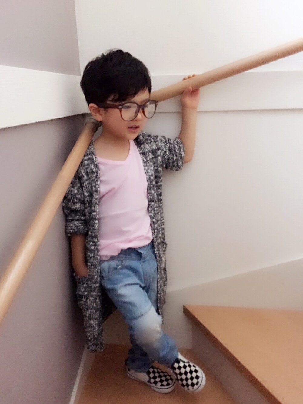息子が好きなピンクを使ったコーデ♪ ロングカーディガンは遊びには不向きなので買い物などのお出かけ用(๑´ㅂ`๑) WEAR初心者ですがフォローよろしくお願いします✨