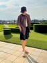 ブラウンシャツにショーツ合わせた夏コーデ🎽 落ち着いたコーデに大抜擢なブラウンシャツおすすめです✨