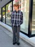 シンプルシャツスタイル 全体的にブラックで差し色でメッシュチェックのシャツ