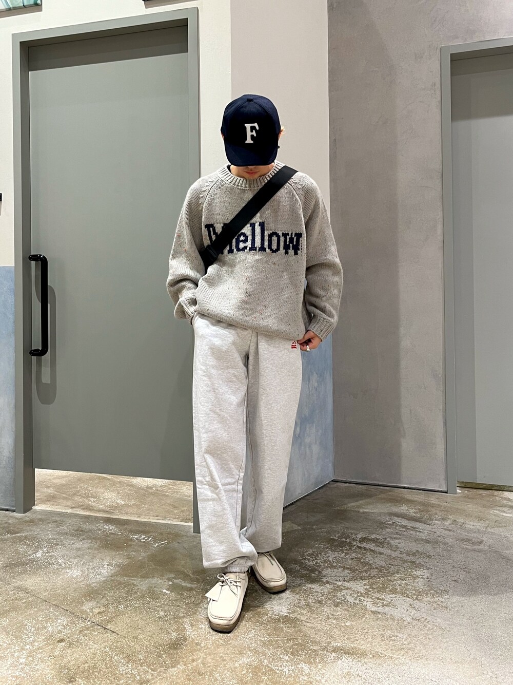 シンプルラフコーデ ビックシルエットなロゴニットにスウェットパンツでラフにコーデ組みました✌️ ロゴとキャップで差し色に