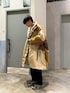 1枚で存在感だせるコートおすすめです✌️ インナーとパンツはシンプルにモノトーンで合わせ、古着感あるコートの存在感をだしてます‼️