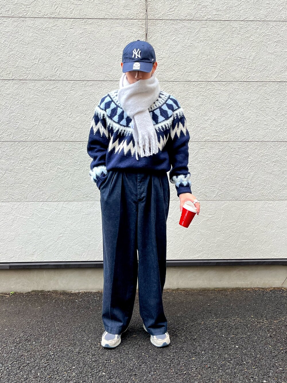 シティボーイスタイル🎩👕 ネイビーを軸にし都会人ぽくコーデ組みました✌️ 今の季節人気なノルディックニットにデニム合わせた誰でも真似しやすいコーデです‼️