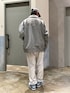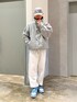 グレーめなアウトドアスタイル🏕 グレーで統一し差し色にブルーのスニーカー👟