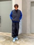 ブルーブラックコーデ セットアップ対応のベストとパンツ使ったカジュアルコーデ組みました✌️ 差し色にブルー使い、誰でも真似しやすいコーデ😌 ワンチャンロゴが可愛く、ユニセックスで着れます‼️