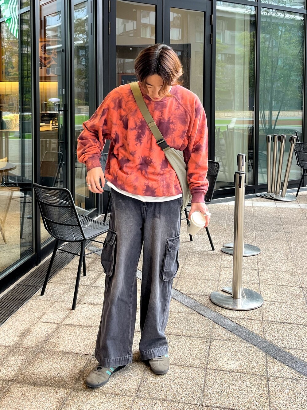 タイダイ染めスウェット 赤×黒のコンビ最強🔥 カーゴパンツにビックシルエットなスウェットで古着男子に