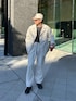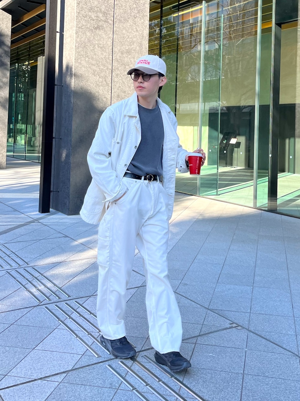 White denim setup キャップとサングラスでシティーボーイコーデに