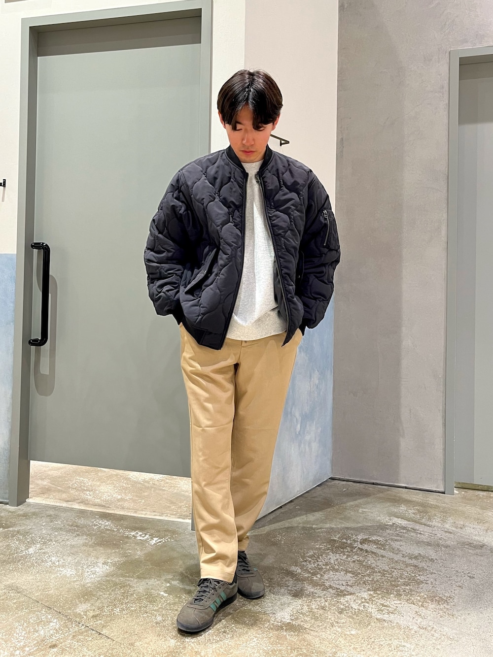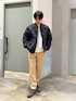 リバーシブルMA-1使った大人カジュアルコーデ デニムスラックスにスウェット合わせた誰でも真似しやすいコーデ組みました✌️ リバーシブルで着れるMA-1春先にもオススメ✨