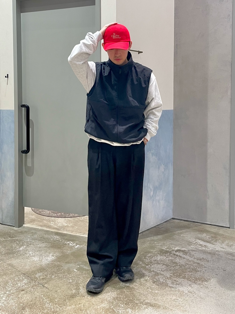 王道ノームコア🍎 ナイロンベストにスラックス合わせたノームコアコーデ組みました✌️ 通年使えるベストおすすめ✨