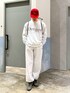 セットアップ風ラフコーデ スウェットにレイヤードしてスウェットパンツ合わせた真似しやすいシンプルコーデ組みました✌️ 差し色に赤キャップ加えることで部屋着感なくすコーデに