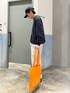 ラフな休日コーデ 全体的にモノトーンで差し色にトートバッグでオレンジ🍊 レイヤードしてワンランク上のコーデに