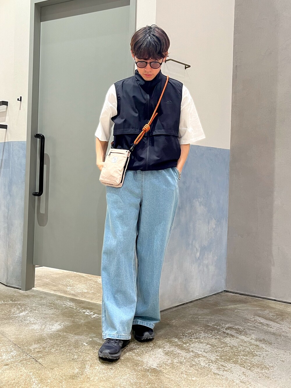 夏先取りコーデ☀️ 撥水性あるベストにデニムパンツ合わせた古着ライクコーデ組みました✌️ これからの時期に活躍する撥水性あるベスト、オススメ✨️ デニムもワイドシルエットで古着好きには🙆♀️