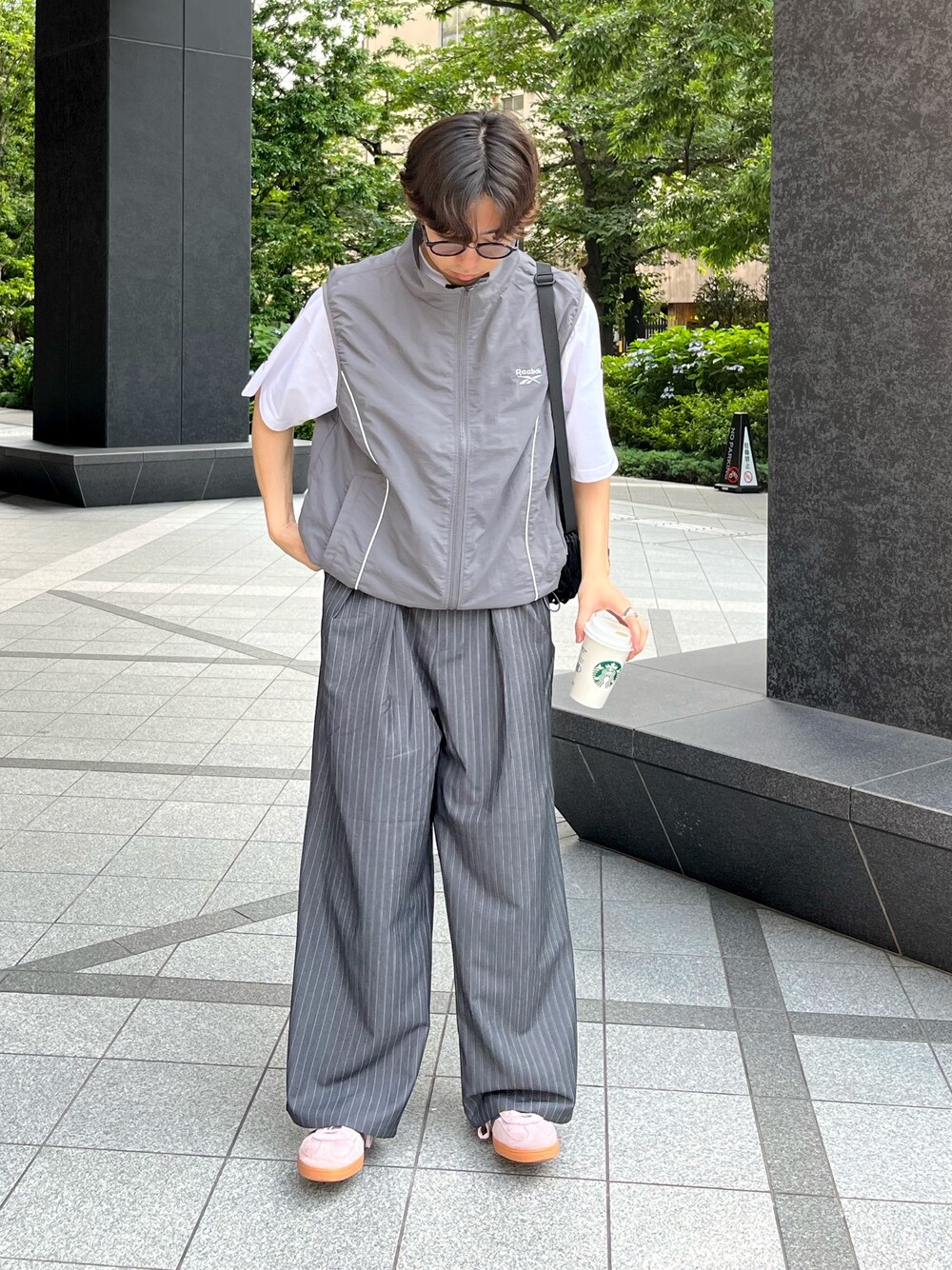 スポーツmixコーデ Reebokのベストにワイドスラックス合わせたシンプルスポーツmixコーデ組みました✌️ すべてユニセックスで着用可能です✨️