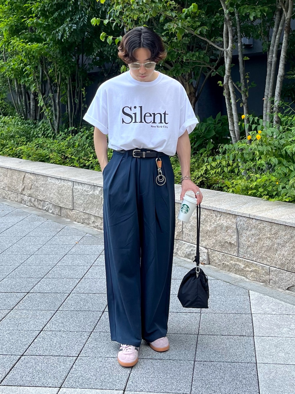 キレイめカジュアル ロゴTにスラックス合わせたキレイめカジュアルコーデ組みました✌️ 明るく、暗くなりすぎずでコーデバランス考えてます! すべてユニセックスで着用可能です✨️