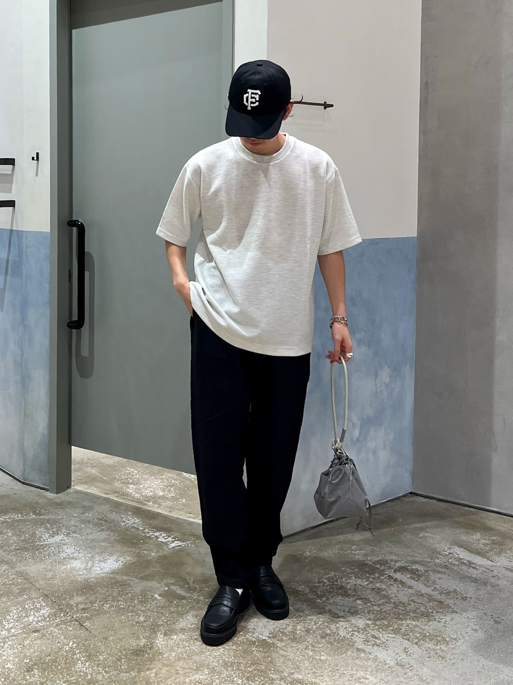 モノトーンコーデ🐕🦺 リンガーTにポコポコ素材のパンツ合わせたモノトーンコーデ組みました✌️ すべてユニセックスで着用可能です✨️