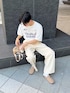 ホワイトコーデ🕊️ ゲームTにフレアパンツ合わせたホワイトコーデ組みました✌️ パンツはベルト付きです✨️ すべてユニセックスで着用可能です‼️