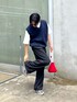 シティボーイstyle👦🏻⭐️ ベストにワイドスラックス合わせたシンプルなコーデ組みました✌️ 差し色に赤🍎